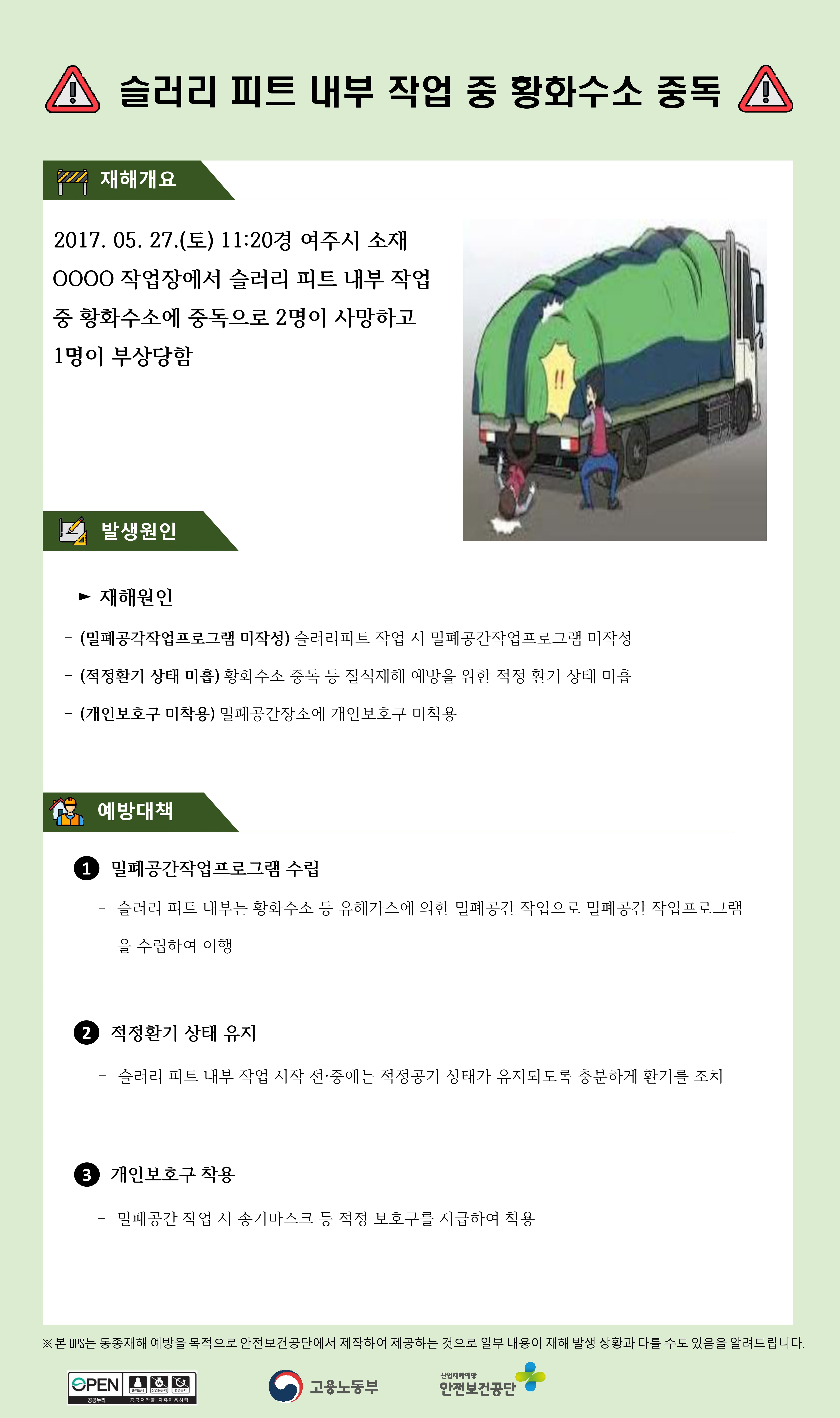 제조업 재해사례 - 슬러리 피트 내부 작업 중 황화수소 중독