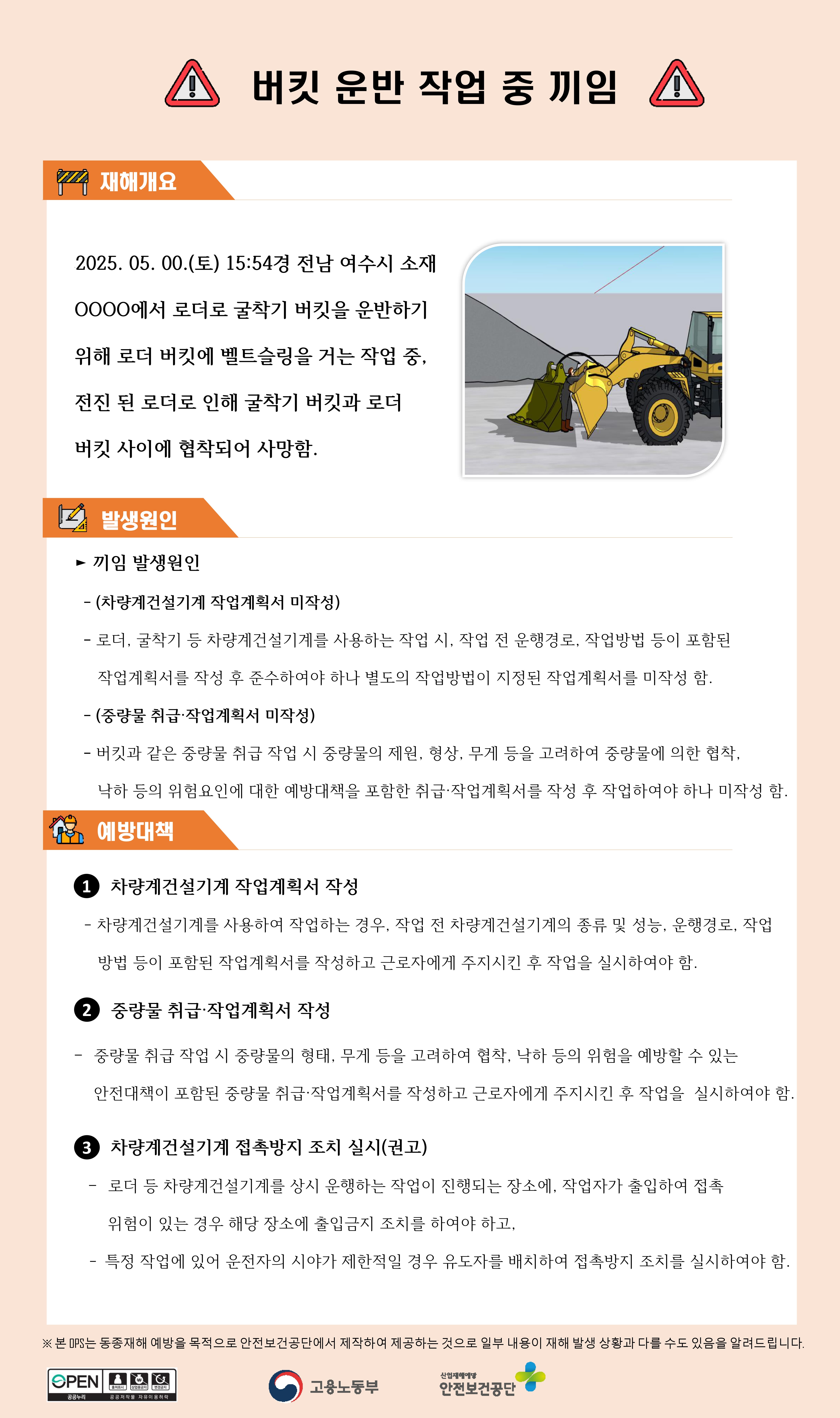 건설업 재해사례 - 버킷 운반 작업 중 끼임