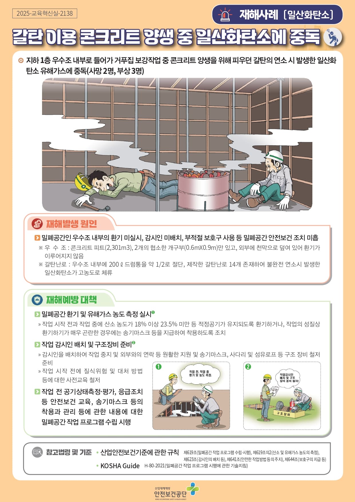 [중대재해] 갈탄 이용 콘크리트 양생 중 일산화탄소에 중독