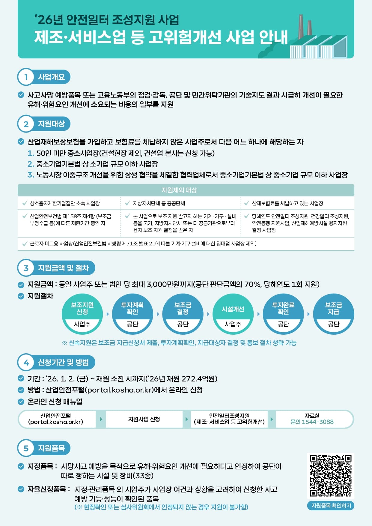 안전일터 조성지원 사업안내 2026년 제조서비스업 등 고위험개선 사업