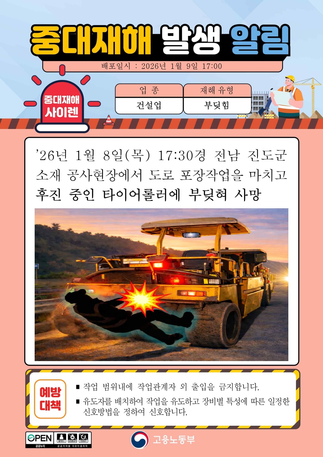 중대재해 발생 알림(1) - 건설업