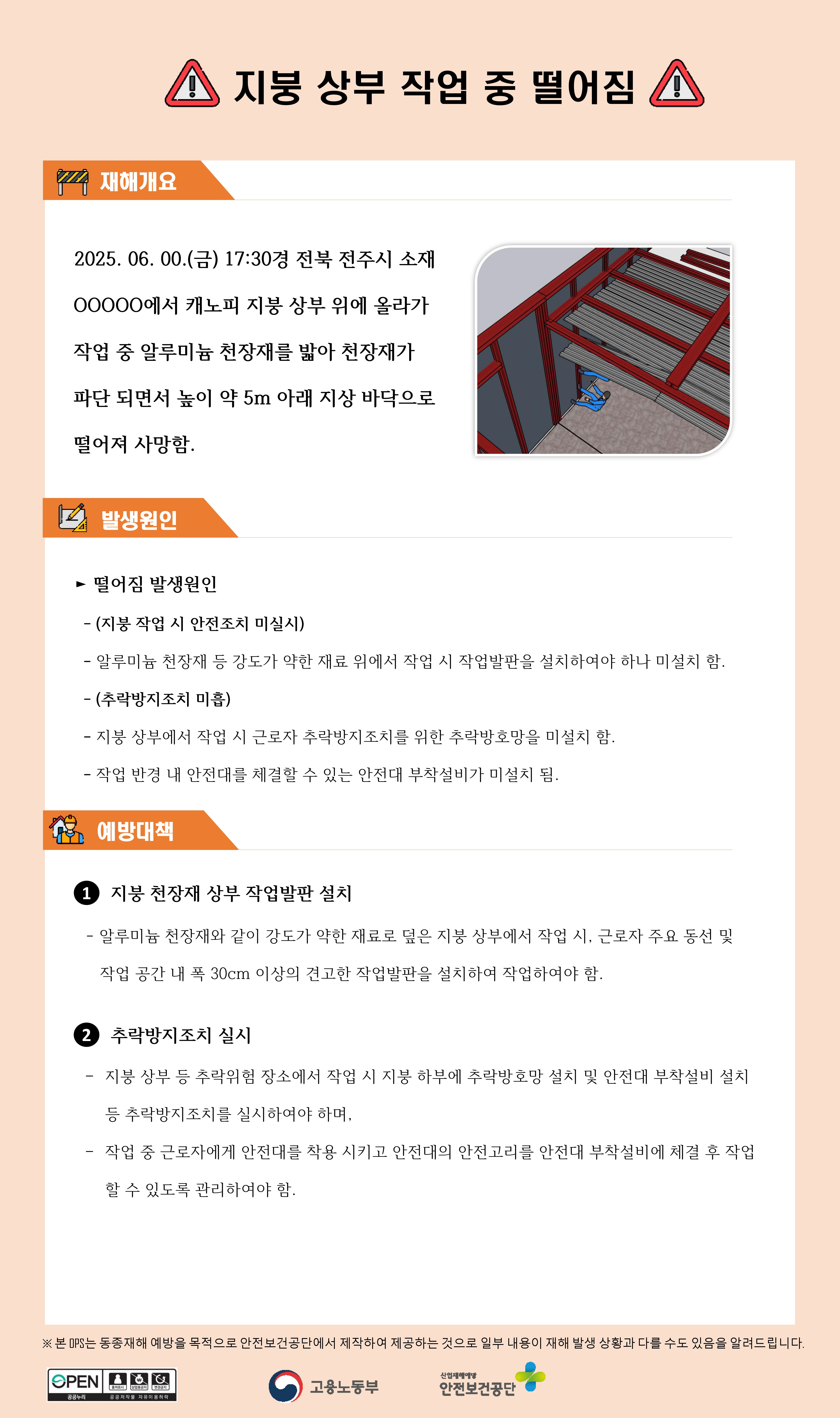 건설업 재해사례 - 지붕 상부 작업 중 떨어짐