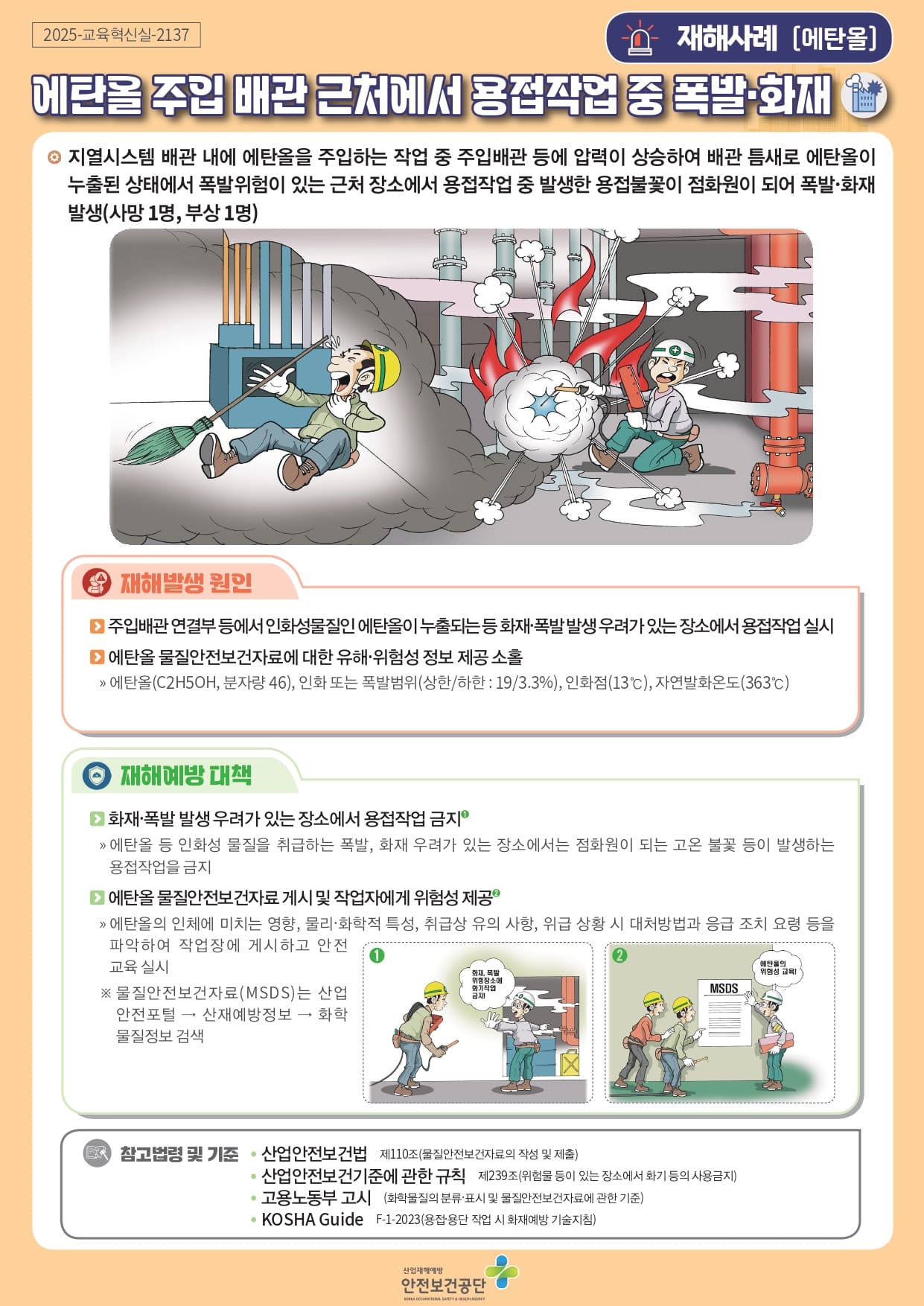 [중대재해] 에탄올 주입 배관 근처에서 용접작업 중 폭발화재