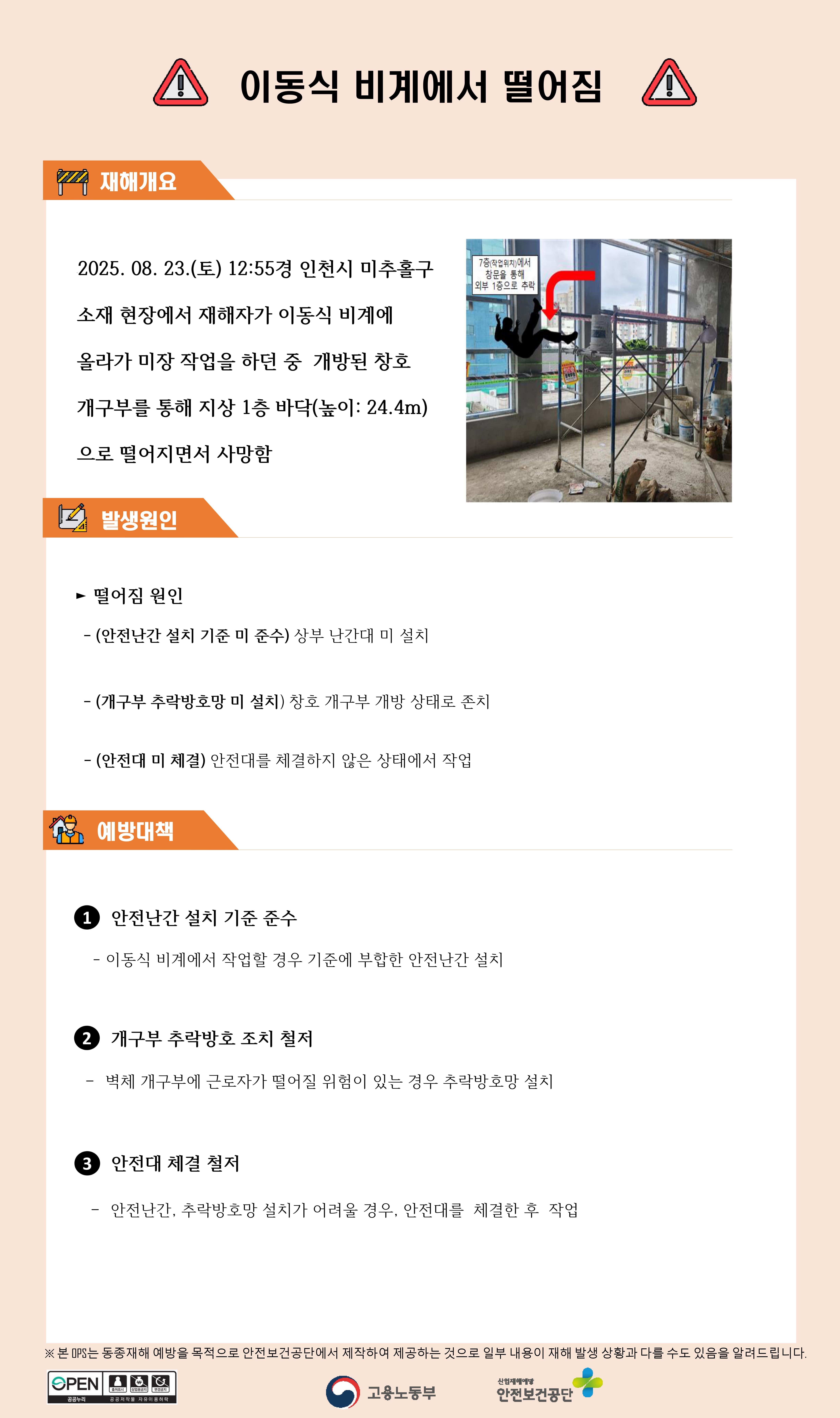 건설업 재해사례 - 이동식 비계에서 떨어짐