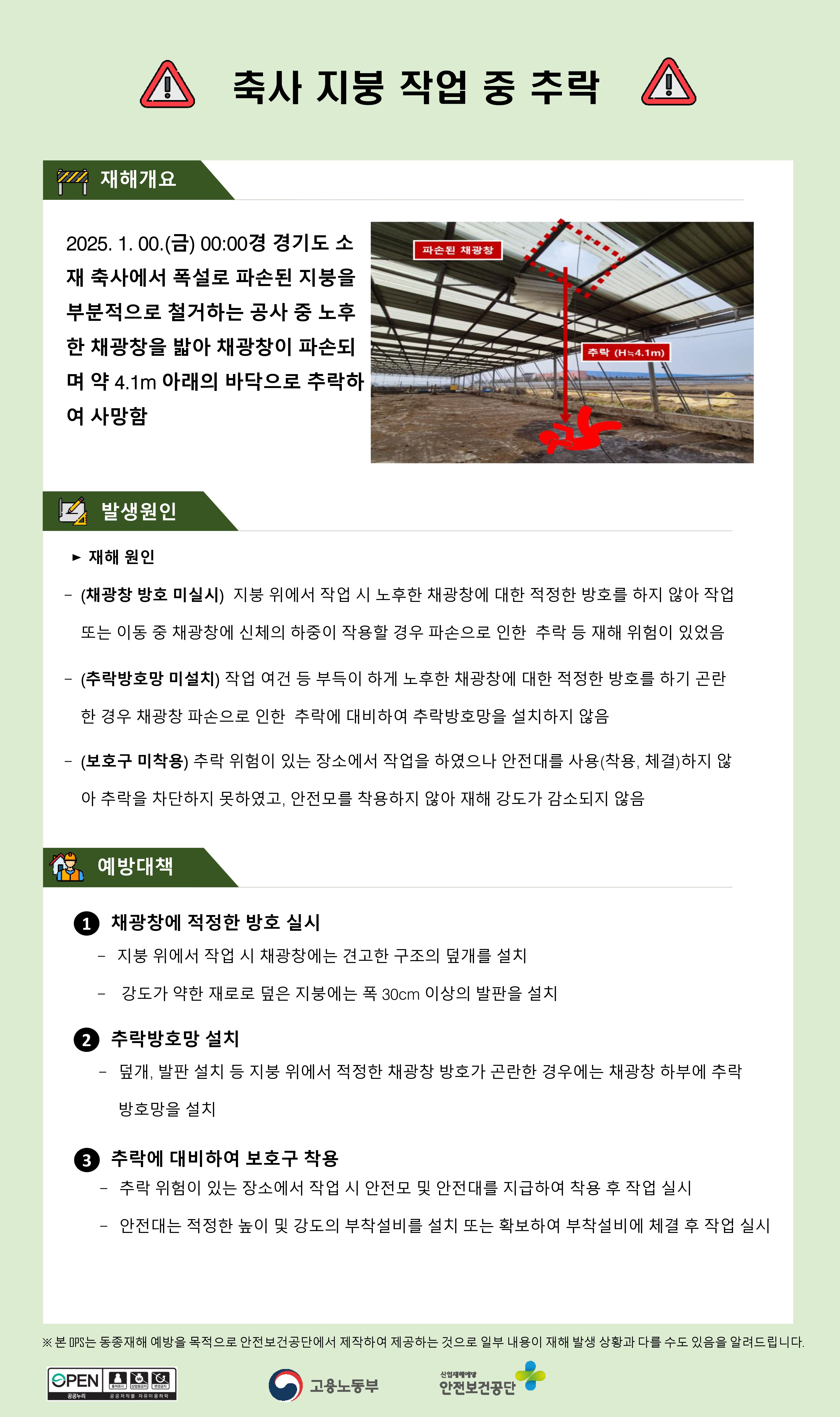 건설업 재해사례 - 축사 지붕 작업 중 추락